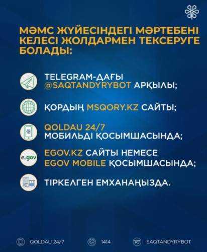 SaqtandyryBot (Telegram), msqory.kz, Qoldau 24/7 қосымшасы, eGov және eGov Mobile, тіркелген емхана.