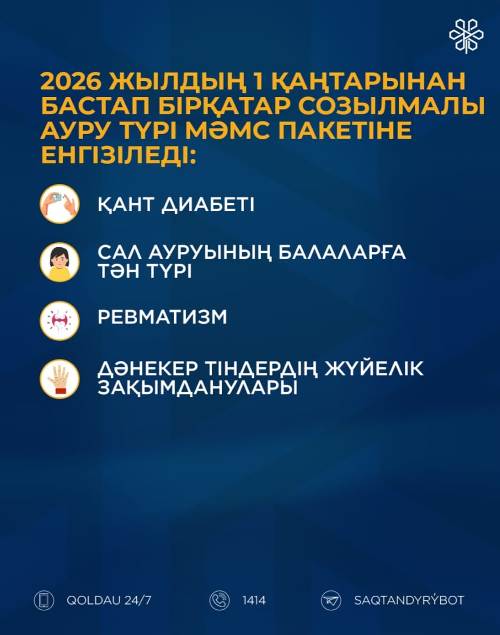 2026 жылғы 1 қаңтардан бастап бірқатар созылмалы аурулар МӘМС пакетіне енгізіледі: