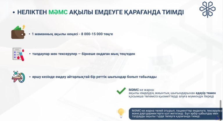 МӘМС арқылы: ✅ жоспарлы емді кешіктірмей аласыз ✅ тексерулер мен консультациялар қолжетімді болады ✅ қаржылық жүктеме азаяды ✅ асқынулардың алдын алуға көмектеседі