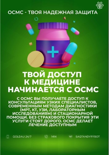 Забота о здоровье начинается с одного шага — участия в системе медицинского страхования. ОСМС предоставляет доступ к консультациям узких специалистов, современным методам диагностики (МРТ, КТ, УЗИ), лабораторным исследованиям и стационарной помощи.