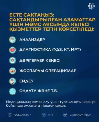 МӘМС аясында сақтандырылған азаматтарға келесі медициналық қызметтер тегін ұсынылады: